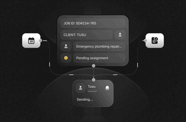 Signal is your AI phone agent. It answers calls at any time of day, books jobs, and records everything inside Squadly. Customers get help straight away. You get fewer admin tasks and lower payroll costs. Signal works on top of Frame, so every call connects to your jobs, staff, and customer records. And with Nexus, those calls trigger automated workflows like scheduling and reminders.